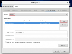 IPv4 Settings kısmından Ip Netmask ve Gateway tanımlayalım. DNS servers bölümünde google’ ın bize tanımlamış olduğu DNS’ lerden 8.8.8.8, 8.8.4.4 DNS’ lerini oraya girelim ve save butonu ile kaydedelim. Ardından Done butonuna basalım ve bir sonraki adıma geçelim.