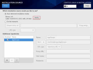 INSTALLATION SOURCE adımında kurulum medyanızın doğruluğundan eminseniz hiç işlem yapmadan done tuşuna basabilir veya Verify butonu ile kurulum medyasını doğrulayabilirsiniz. Test işlemi bittikten sonra done butonuna basın ve devam edin.