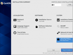 Security Policy kısmından güvenlik politikasını okuyabilir ve ardından Begin İnstallation butonu ile kurulumu başlatabilirsiniz.