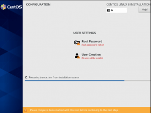 Kurulum gerçekleşirken sizden bir root şifresi ve user oluşturmanızı isteyecektir. Root Passworda tıklayalım ve devam edelim.