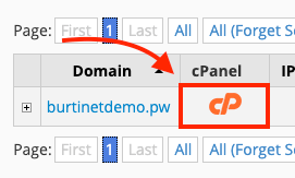 • Hesapları listele kısmında oturum açmak istediğiniz kullanıcının sağ tarafında yer alan cPanel logosuna tıklayarak ilgili kullanıcıya giriş yapabilirsiniz.