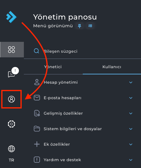 1- Sol tarafta sabit menüde yer alan kullanıcı iconuna tıklayın.