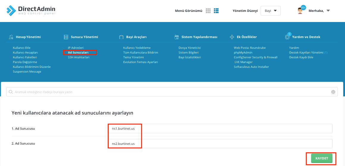 3. Directadmin Panel Üzerinden Özel NS Kaydı