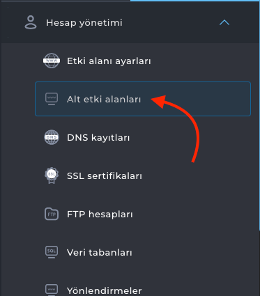 Account Manager menüsü üzerinden Subdomain Management sekmesine tıklayın.
