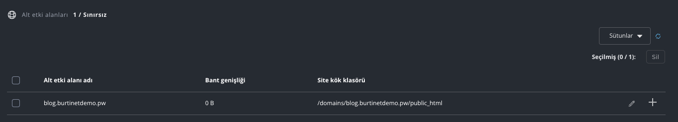 Alt etki alanınız oluşturulmuştur. Bu işlemden sonra System Info & Files > File Manager üzerinden ilgili subdomain için oluşturulan klasör üzerinden işlem yapabilirsiniz.